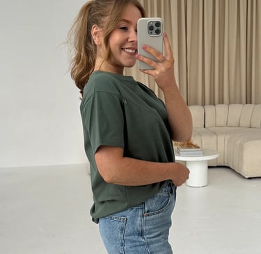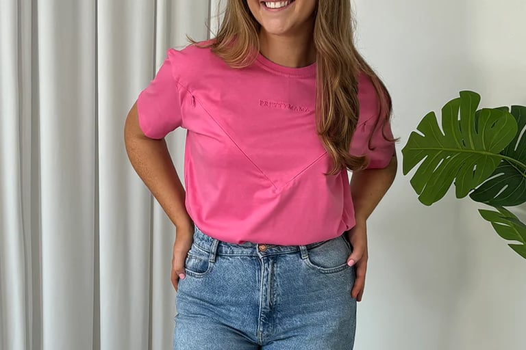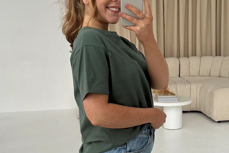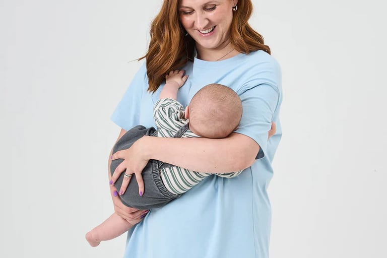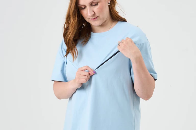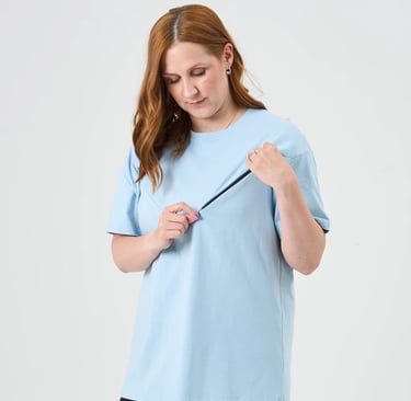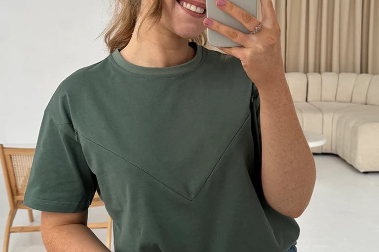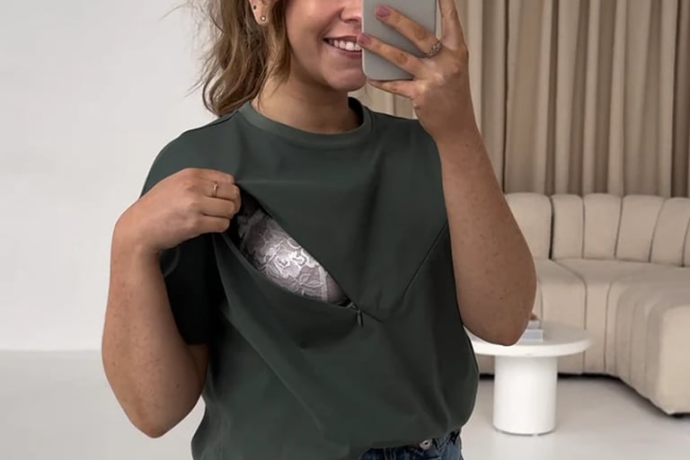 ودّعي رفع القميص أو الشعور بعدم الراحة أثناء الرضاعة! هذا التيشيرت المصمم خصيصًا للأمهات يوفّر فتحة أمامية عملية تسمح لك بإرضاع طفلك بسهولة تامة وبخصوصية كاملة، دون كشف أي جزء من صدرك حتى في الأماكن العامة